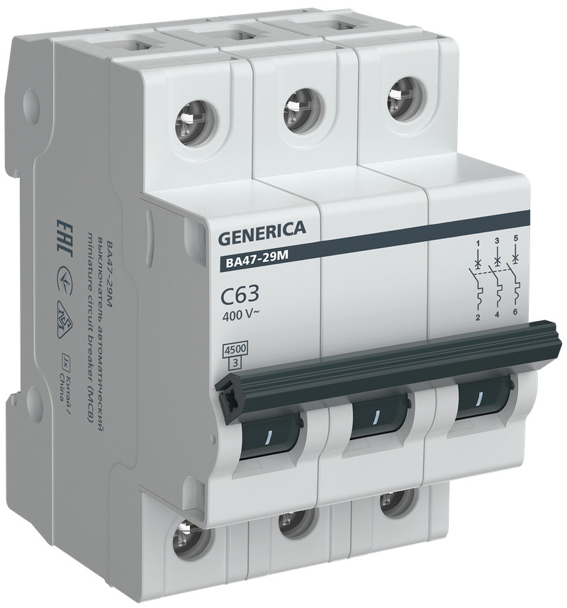 Автоматический выкл. IEK GENERICA ВА47-29М 3P 63А 4,5кА х-ка C  MVA21-3-063-C-G