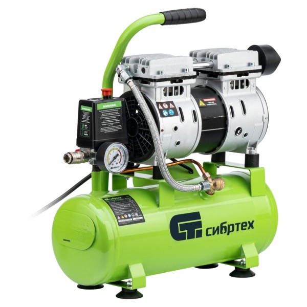 Компрессор безмаслянный малошумный МБ 750/10,750 Вт, 10 л, 150 л/мин Сибртех