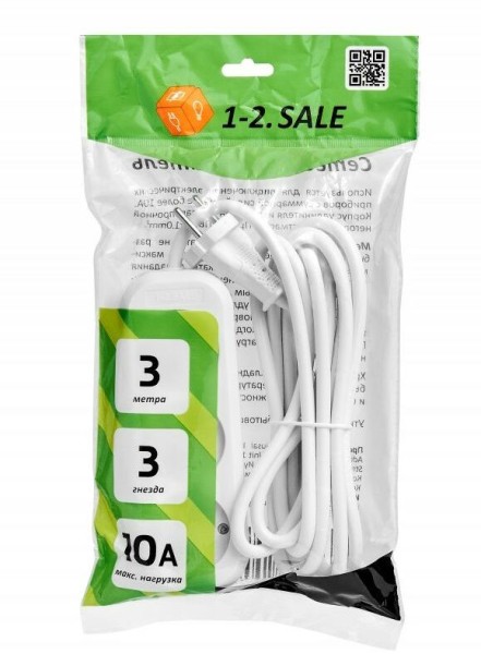 Удлинитель сет. 1-2.SALE ПВС 2х1 3роз. 3м 10А (корпус АБС-пластик) E1М 860459