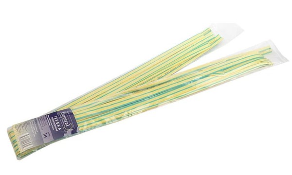 Термоусадка трубка General ТУТ 10/5мм, Желто-зеленая 1м (уп.10м, цена за 1м) GHS-10-5-YG 475128
