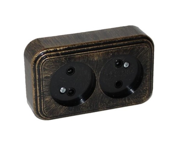 Розетка ОУ 2мест. Элект LOFT 16А (патина черный под бронзу, АБС-пластик) RA 16-237-ЧБ (РБ)