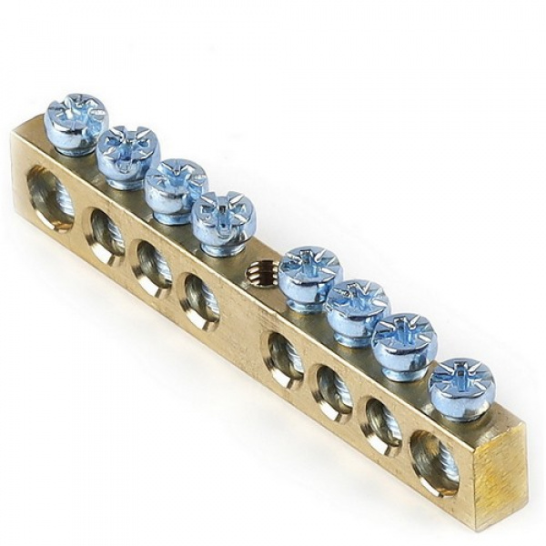 Шина "N" нулевая (латунь) 6х9мм, 8 групп, крепеж по центру, Smartbuy (SBE-bc-08)