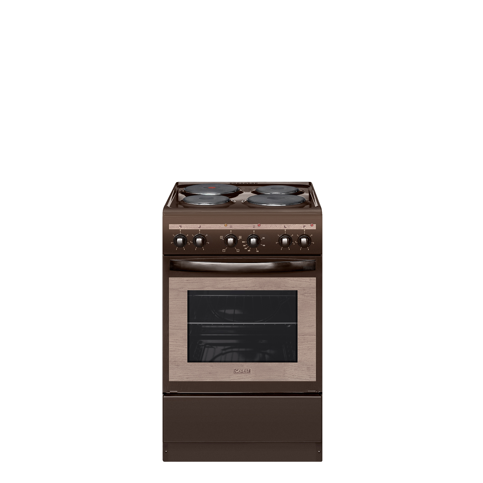 Плита оснащена четырьмя чугунными конфорками с мощностью от 1 до 2 кВт. Варочная панель покрыта качественной эмалью, которую легко очистить после остывания конфорок. Управление параметрами работы плиты осуществляется с помощью поворотных механических кнопок. Модель также имеет верхнюю крышку, которая защищает конфорки во время транспортировки и позволяет временно увеличить рабочую площадь на кухне.