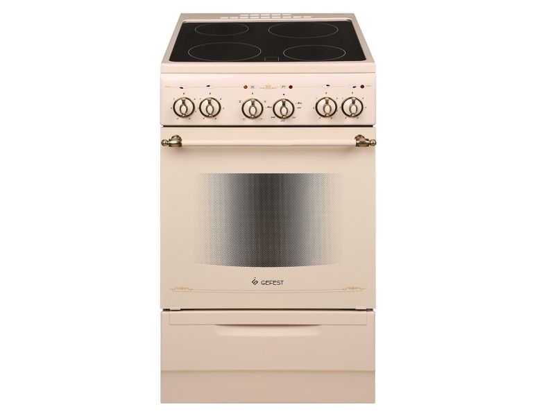 Электроплита Gefest 5160-02 0147 кремовый с рисунком ретро, стеклокерамика, 4 зоны, 6150Вт, 50x59