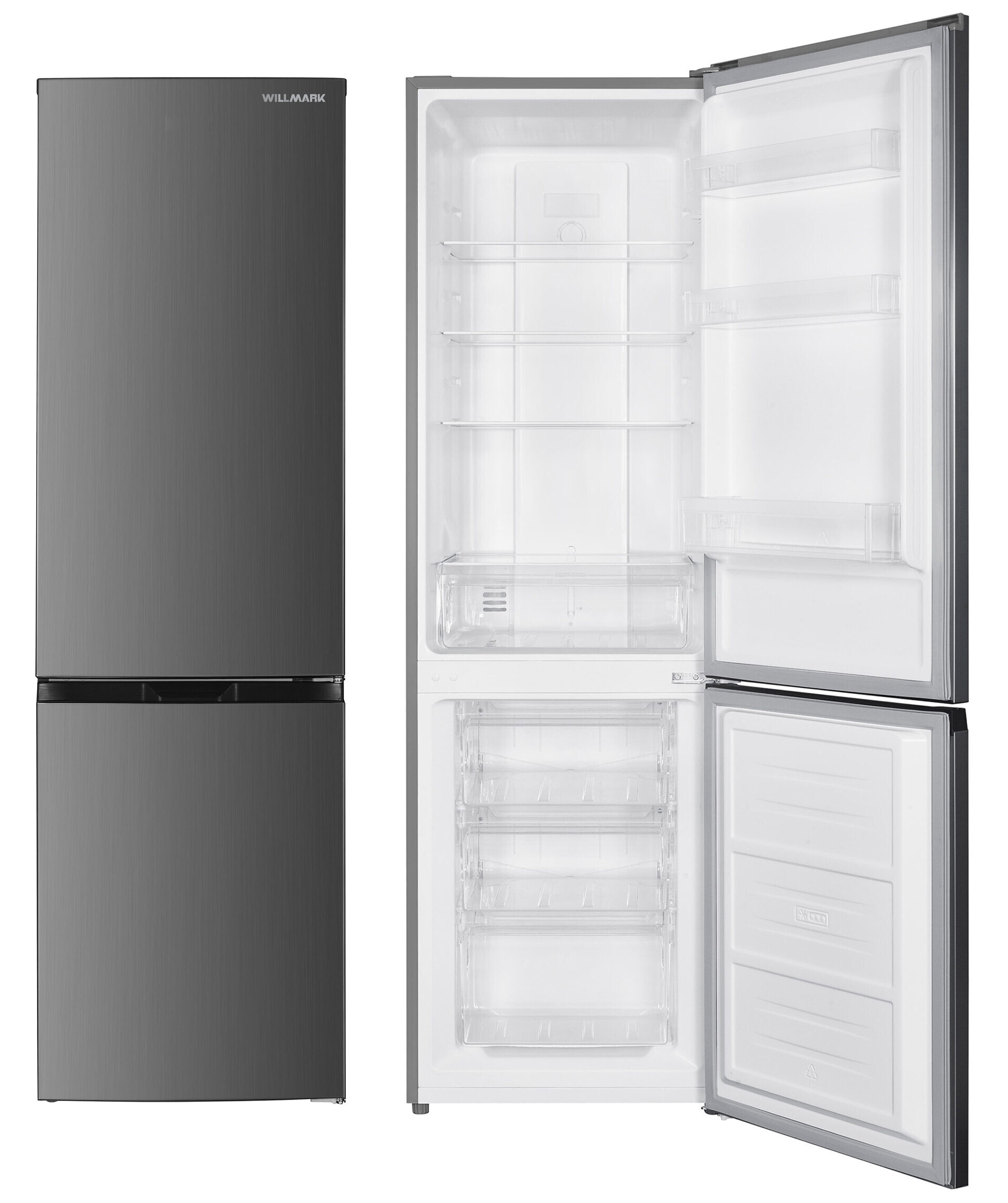 Холодильник двухкамерный компактный. TOTAL NOFROST (не требует разморки). Общий объем 271л. Полезный объем (холодильное отделение): 182 л. Полезный объем (морозильное отделение): 51 л. Температура холодильной камеры: +2 до +8 градусов. Температура морозильной камеры: -8 до (-22) градусов. Надежный компрессор. Класс энергоэффективности А+. Климатический тип SN/N/ST/T. Хладагент/ масса: R600A. Цвет Темно-серебристый. Нижняя морозилка. Компактные габариты. Перенавешиваемая дверь. Размер изделия 550*600*1800 мм.
