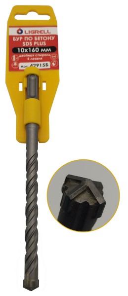 Бур по бетону 10х160 двойная резьба sds-plus 4 лезвия