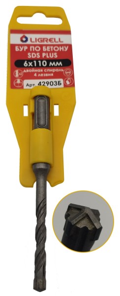 Бур по бетону 6х110 двойная резьба sds-plus 4 лезвия