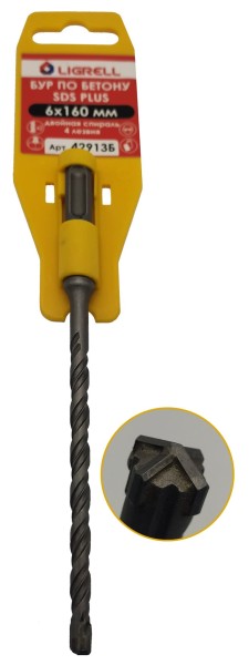 Бур по бетону 6х160 двойная резьба sds-plus 4 лезвия