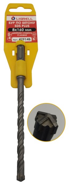 Бур по бетону 8х160 двойная резьба sds-plus 4 лезвия