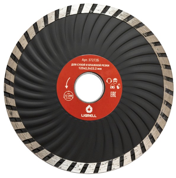 Диск отрезной алмазный LIGRELL 125х2,2х22,2 «турбо-волна», усиленный (сухая и влажная резка)