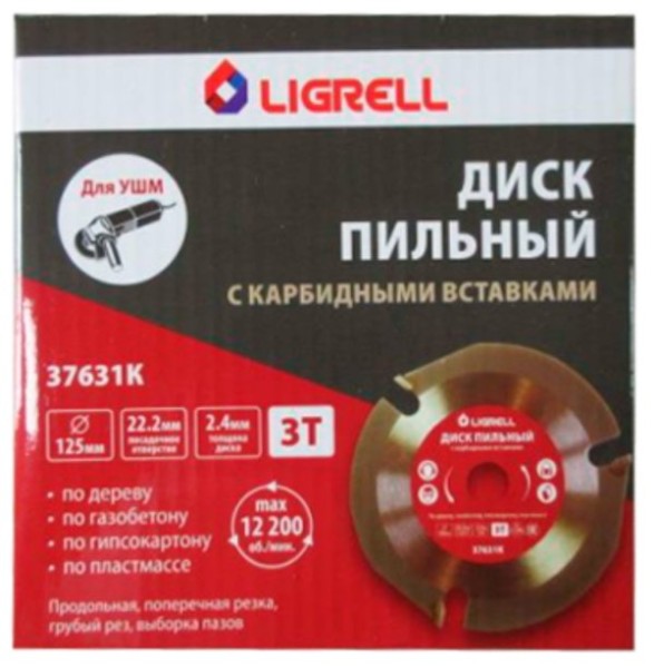 Диск пильный 125мм п/д 22,2мм по дереву LIGRELL, 3 зуба с карбидными вставками