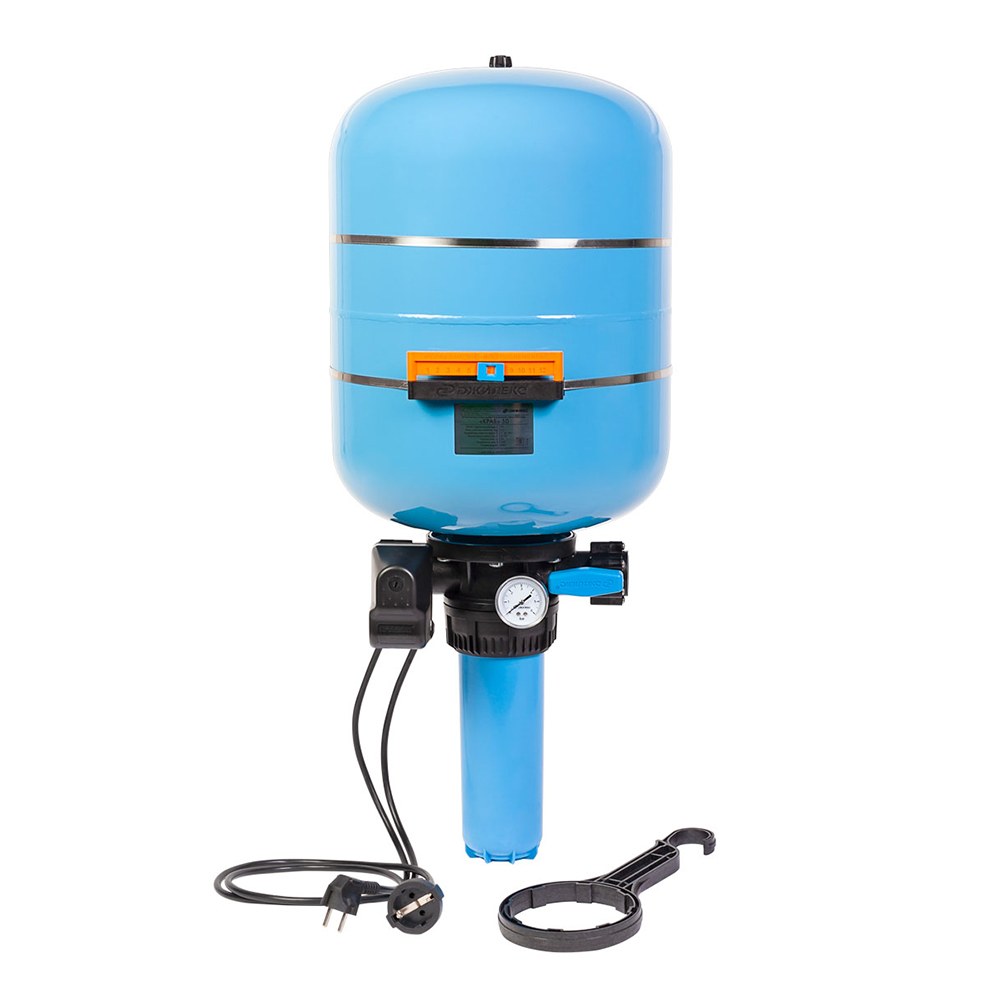 Джилекс "КРАБ" (50 литра) - Комплексное Решение Автоматизации на Баке. Предназначен для автоматического управления включением и выключением электронасосов, поддержания заданного давления в системах водоснабжения и предварительной фильтрации воды.