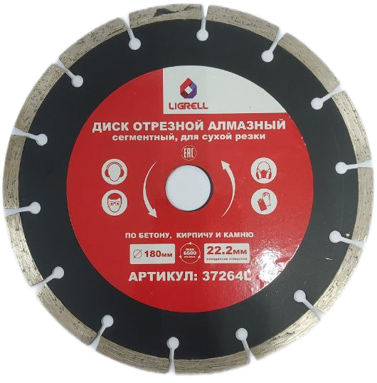 Диск отрезной алмазный сегментный, для сухой резки Ø180мм, Ø22.2мм max6600об/мин LIGRELL