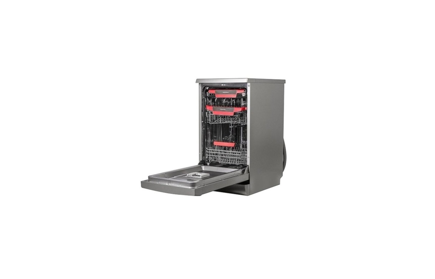 Модель обладает современной компоновкой с третьим ярусом для столовых приборов, у которого есть собственный распылитель. Таким образом достигается идеальная чистота каждого предмета и рациональное использование пространства.