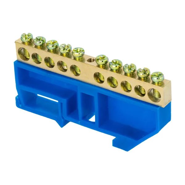 Шина "0" N (6x9мм) 10 отверстий латунь синий изолятор на DIN-рейку EKF PROxima sn0-63-10-d