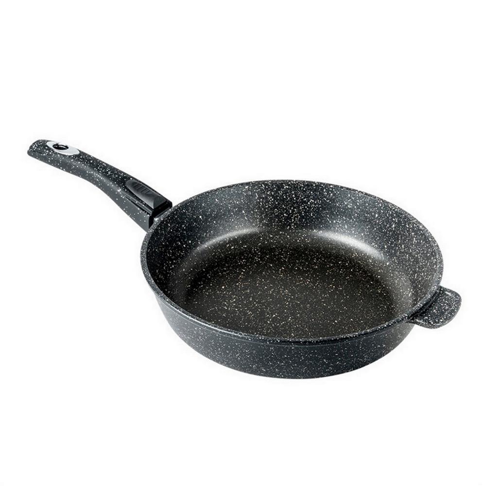 Материал не содержит вредных добавок. Готовить можно с минимальным количеством масла и жиров. Гладкая поверхность обеспечивает легкость ухода за посудой. Сковорода подходит для использования на газовых, электрических и стеклокерамических плитах, Можно мыть в посудомоечной машине.