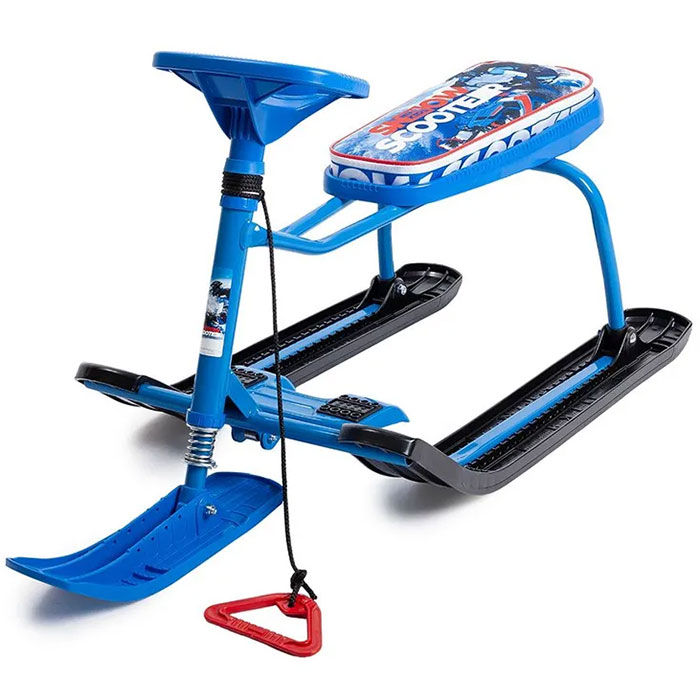 Имеет сварную конструкцию из стальных труб, пластмассовые морозостойкие лыжи и мягкое сиденье, буксировочный трос (без автомнамотки).