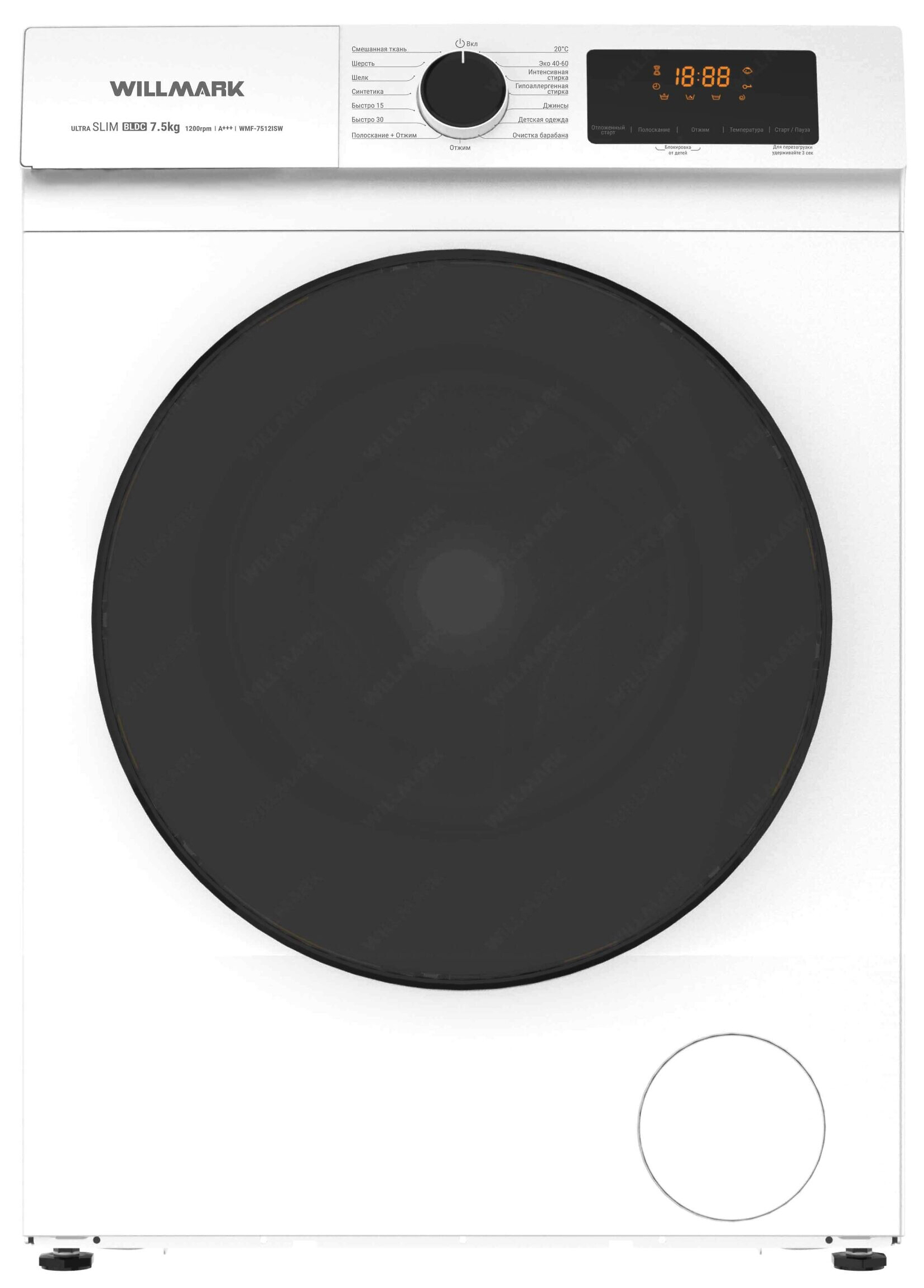 Стиральная машина WILLMARK WMF-7512ISW INVERTER белый, 7,5кг, 1200об/мин, 1950Вт, 60*45*84см