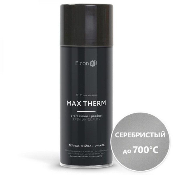 Эмаль аэроз. термостойкая 700град серебристая 520мл Elcon MAX THERM