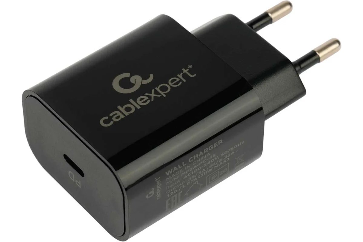 Зарядное устройство Cablexpert 20Вт, 3А, QC3.0/PD, 1 порт Type-C, черный, пакет
